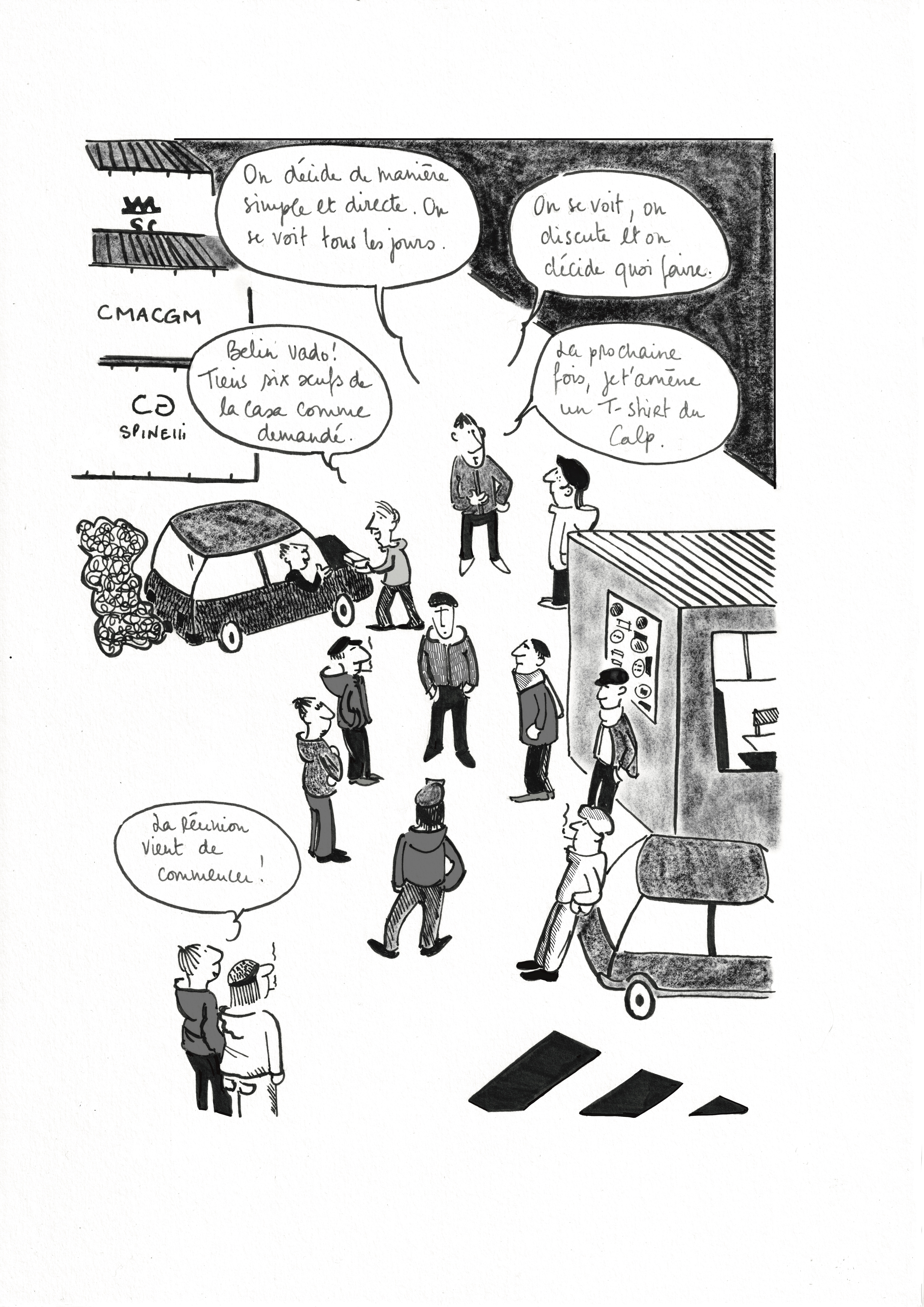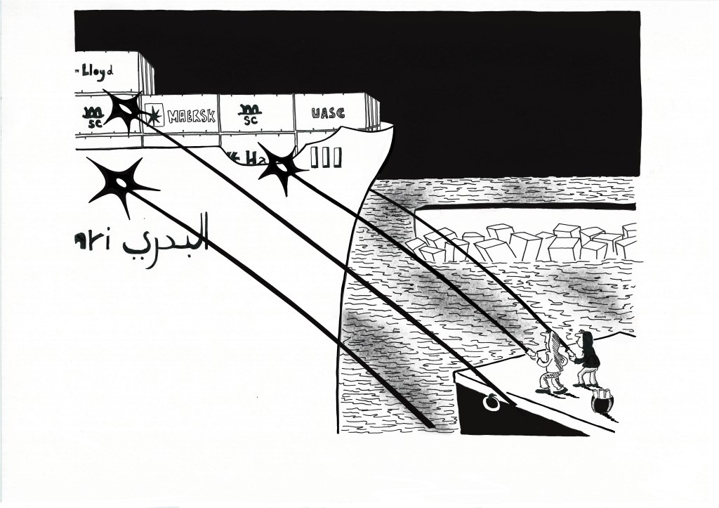Ombres rouges, publication de 168 pages, aux éditions Hélice Hélas, 2025. Ombres rouges retrace la résistance du CALP, un collectif indépendant de dockers, contre le transit des armes dans le port de Gênes. Ce reportage BD raconte le destin d’une ville et de sa mer, tout en interrogeant notre humanité face à ses guerres.